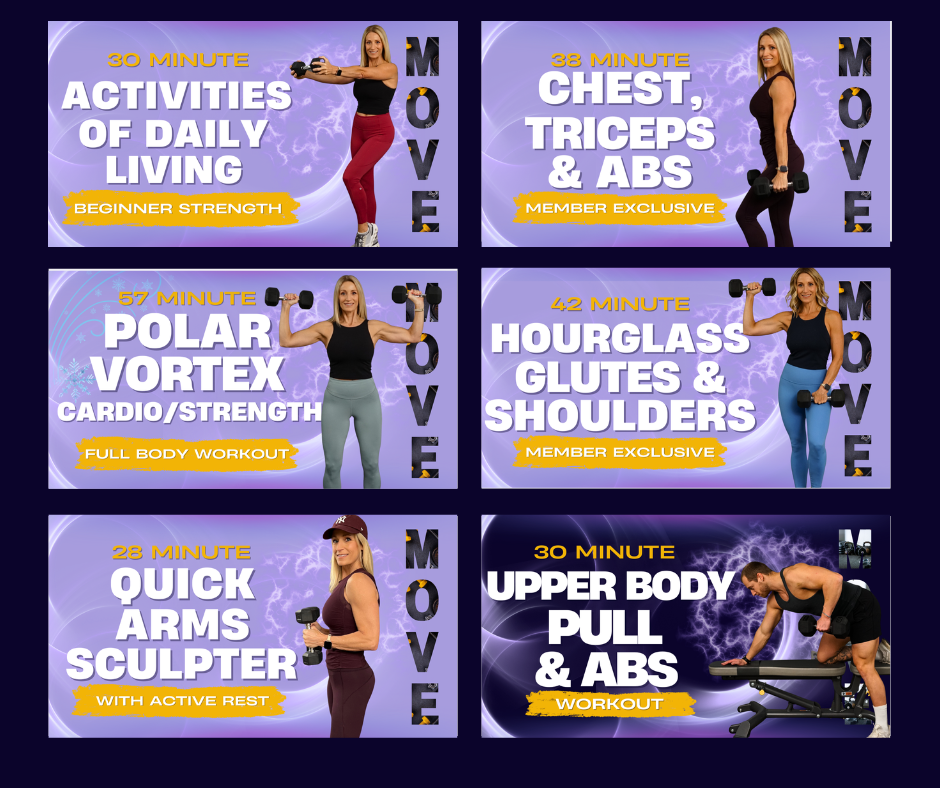 If you’re not already part of our Move Daily Hustle FREE community Facebook page, now is a great time to come on over. With over 30,000 Movers, it’s a great place to keep up with all things Move Daily. Every Sunday we announce the coming week’s workouts, new programs are shared there and we are always running free competitions and challenges. Not only that, but if you need support or advice, you can tag Coach Kim and she will guide you.
