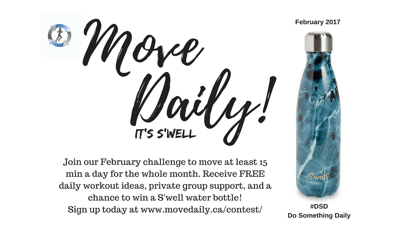 In February, Move Daily Fitness is hosting another challenge! This time, we want you to track and commit to #DSD (Do Something Daily)! The challenge is to do some physical activity every single day for a minimum of 15 minutes. That could mean going for a walk, doing the stairs in your office at lunch, attending a class, swimming, or even dancing the night away!