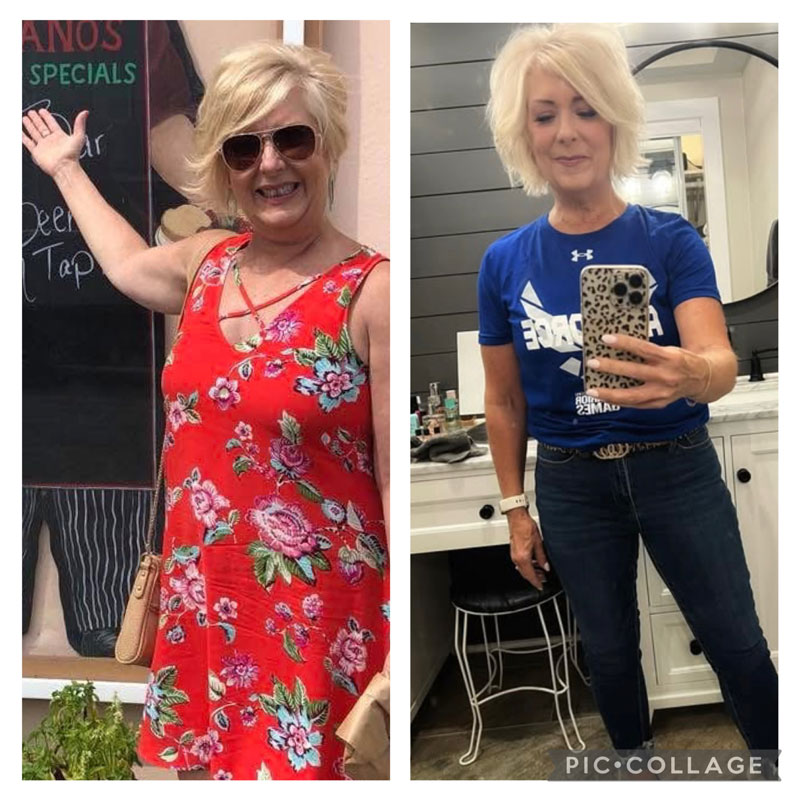 “Since 2020 I have been a member and dialed in. I look back at the photo from 2018-yo yo ing, still drinking alcohol and can’t believe it is me. Additionally, I was struggling with menopause weight gain, etc. The best thing from 2020 was finding you and your workouts. I have learned soooo much about wellness and nutrition and am thankful that other person is in the rearview. When you know better, you do better. “ – Karen Luciano