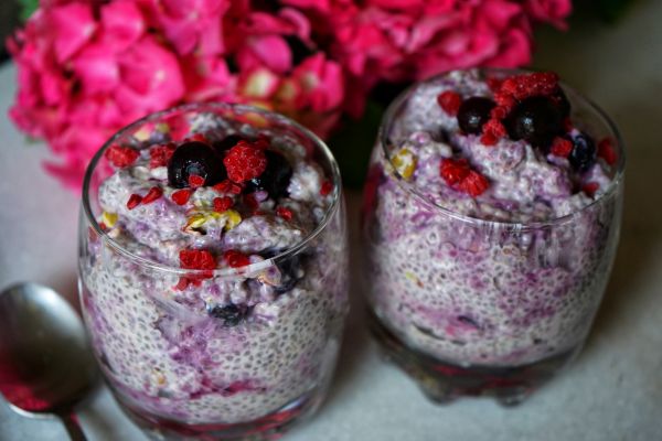- Blueberry and pistachio chia pudding bowls (sub a plant based yoghurt)