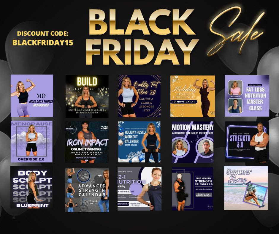 We LOVE Christmas and the holidays at Move Daily. Tracy always heralds it as the season of giving back – for us, to thank you all for your dedication, commitment and community spirit over the course of 2025. Kicking off with the annual Black Friday sale, we have programs, prizes and plenty of fun to see you through December. Here is all that you can look forward to.